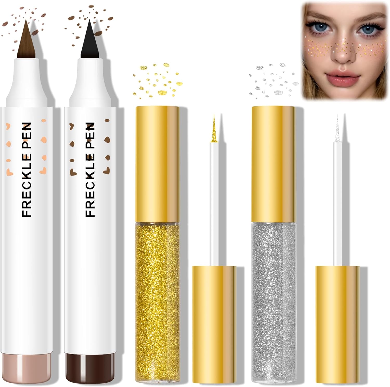 Freckles Pen Makeup Set: Available in four stunning shades - gold, silver, light brown, and dark brown - this glitter freckles face tattoo tool allows you to create fake freckles that natural, shimmer and sparkle, effortlessly blending with your skin tone