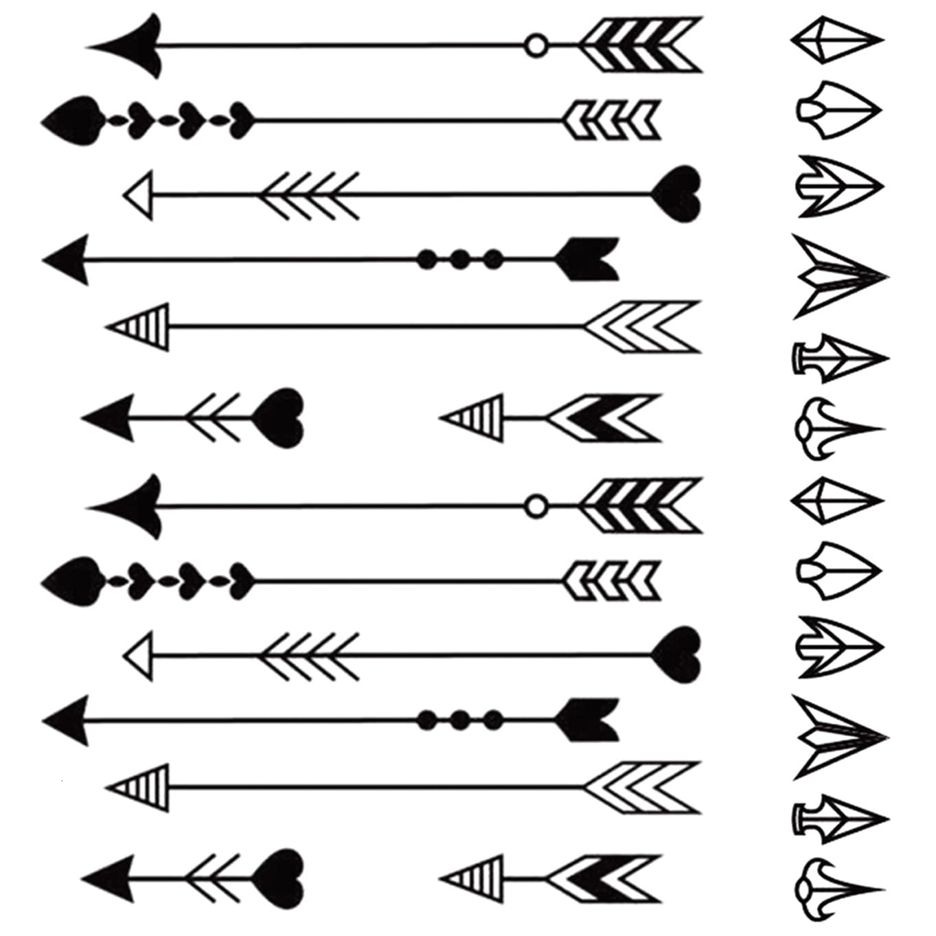 Small Cute Temporary Tattoo Sticker Set of 2 - Minimalist Geometric Black Heart Arrow Totem Designs for Hand Neck Face Wrist, Waterproof Fake Body Art, Simple & Modern Unisex Skin Decals