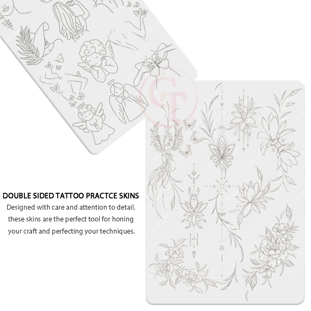 • Microblading Tattoo Supplies:Improving your tattooing skills with our pre-printed tattoo practice skin. Designed especially for tattoo artists and beginners to refine their craft. With its realistic texture, pre-printed designs, and durability, you can elevate your skills to the next level and confidently embark on your tattooing journey.