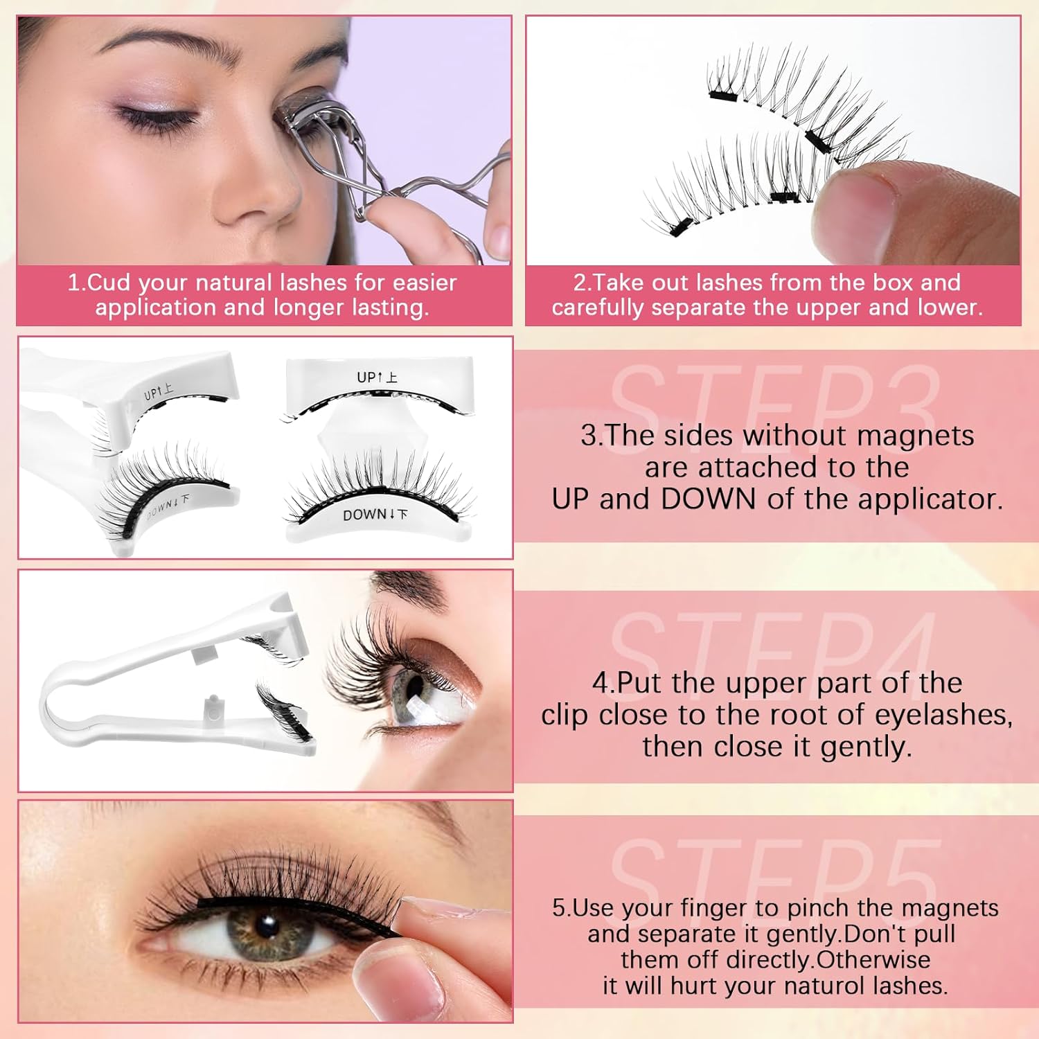 【Natural design for daily wear】Natural design magnetic eyelashes can add sweetness and freshness to your eye makeup, and the natural lashes are suitable for daily wear. Whether you are pursuing a natural nude makeup or delicate makeup, this press on eyelashes no glue needed can bring you a natural and elegant effect.