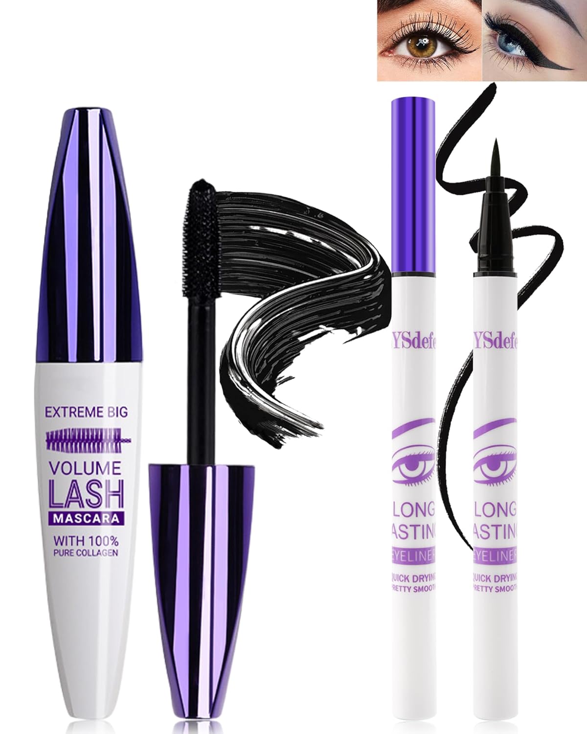 Longwear Waterproof & Smudge-proof - With a unique formula, our products are stronger waterproof, smudge-proof and long wear. waterproof mascara can lengthen your eyelashes with a natural curl, no falling, and gently adds volume effortlessly. Our precise liquid eyeliner is intense color and its soft felt tip draws defined lines effortlessly, delivering an impressed, deep-eyed look. You can wear them comfortably all day and don't worry about makeup fading