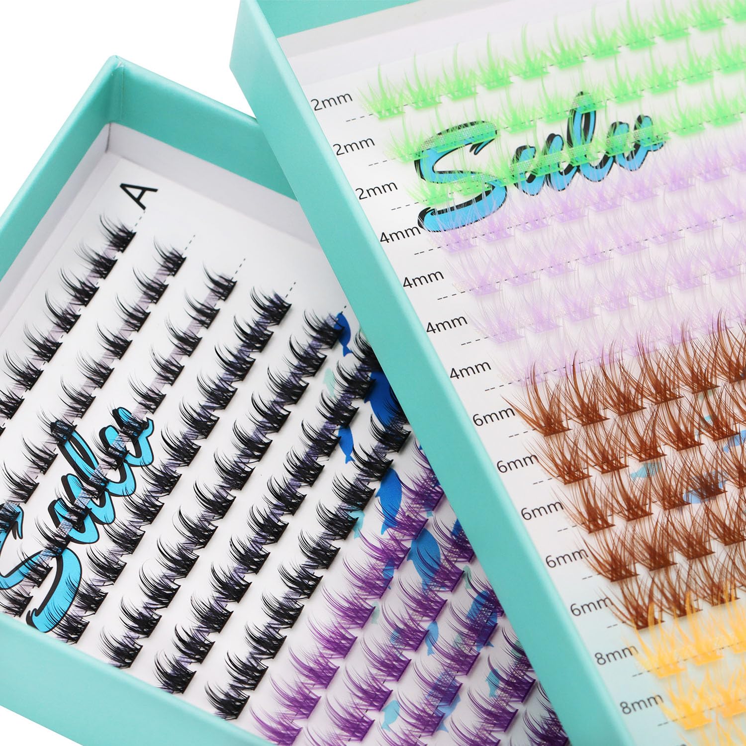 Pack:SLC07# Colors=A: Black+Deep Purple+Blue Mixed - Green Mixed, B: Light Green+Light Purple+Brown+Orange+Black;thickness:0.07mm,D Curl,44 rows,528 pcs,reusable individual eyelash extensions in varying lengths from 8-20mm mixed size eyelashes.