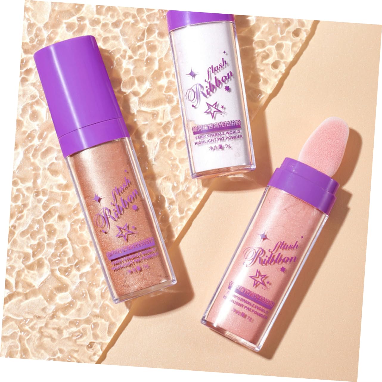 VICASKY 3pcs Body Shimmer Highlighting Powder Glitter Highlighter for Women Versatile Reflective Makeup Chic Colors Pearl Pink Brown for Parties and Events