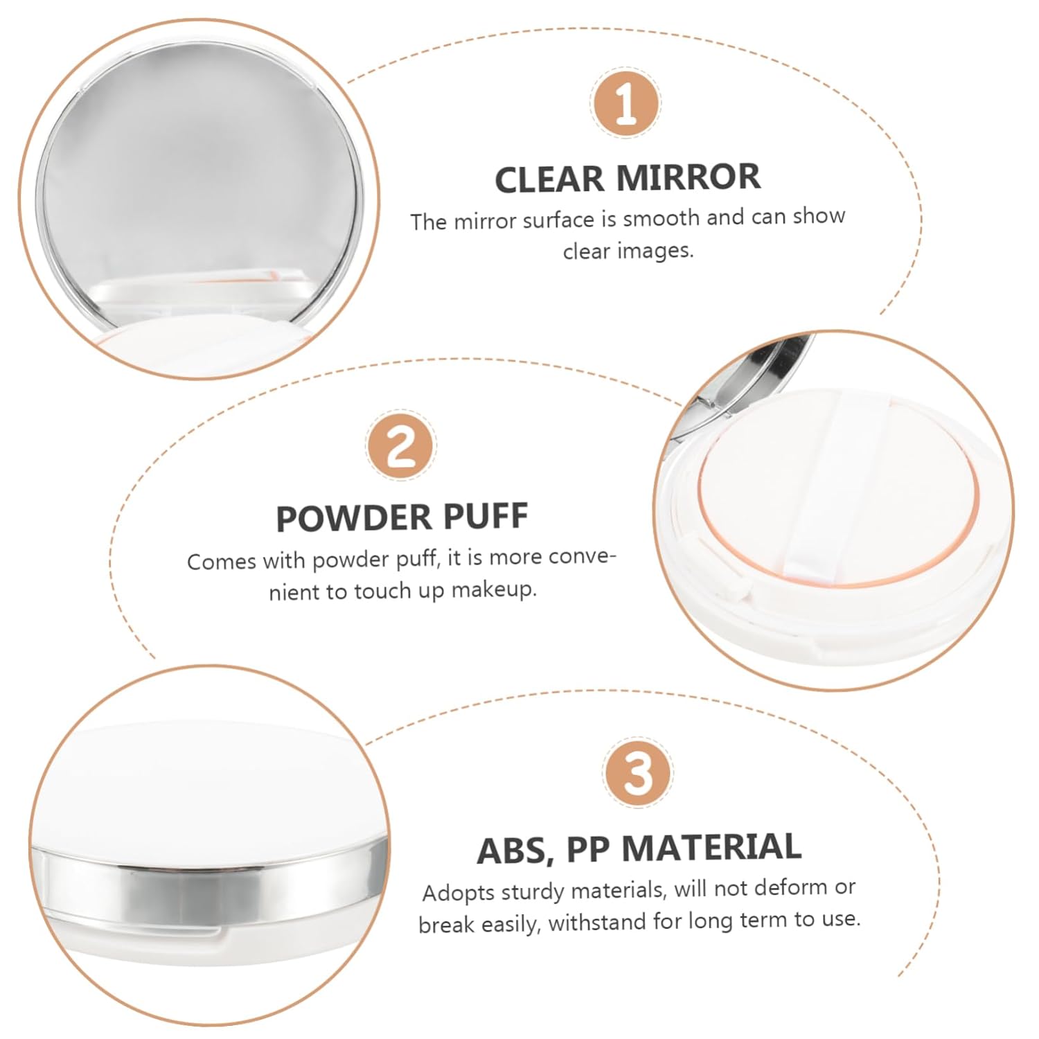 Cushion foundation case with mirror:empty powder box is made from sturdy materials, not easy to deform or break, could support long time using,powder container travel