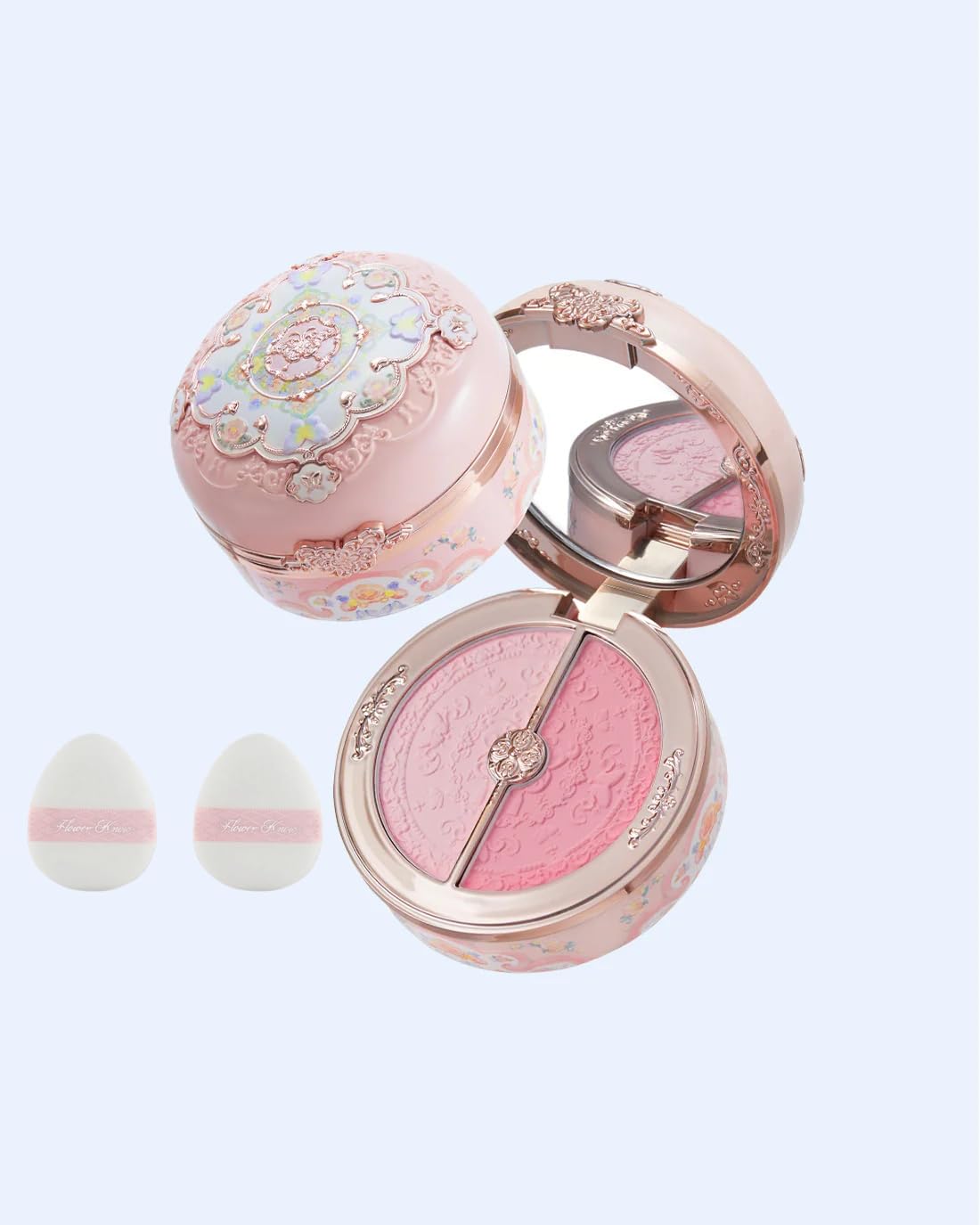 Flower Knows Butterfly Cloud Collar Highlighting & Blush Duo Powder+Puffs Set,Matte Finish,Buildable & Blendable Makeup Blush for cheeks,Soft & Long-lasting for Girls & Women(03 Pastel Lotus)