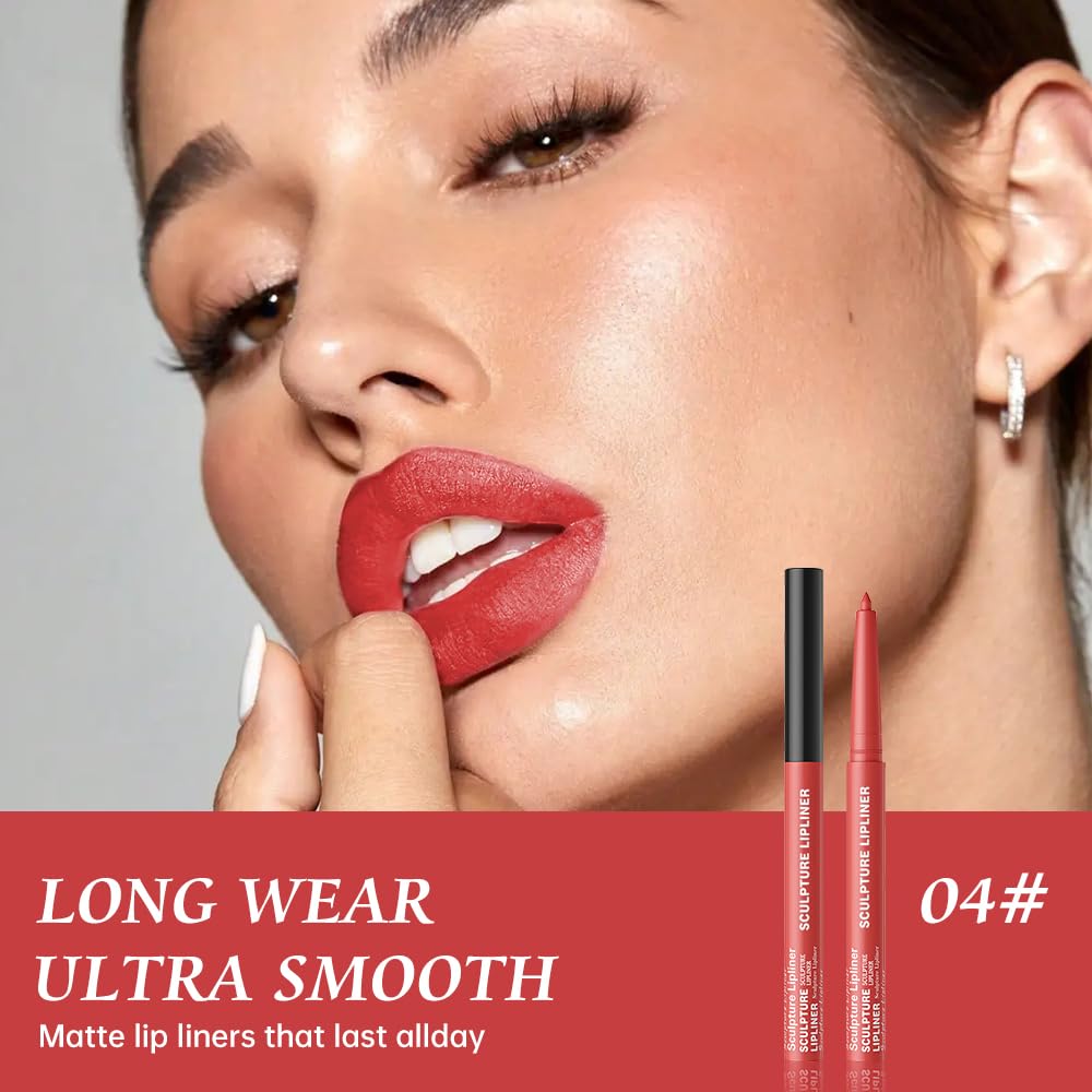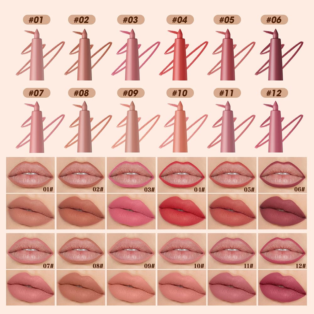 【12 High Pigment Colors】 Features 12 popular matte lip liner shades, from nude and brown to pink and red, perfectly matching lipsticks and lip gloss for any makeup style.