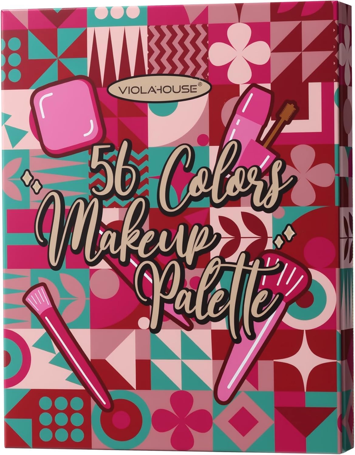VIOLA HOUSE 56-shade Eyeshadow Palette Makeup Set with 7 Eyeshadow Brush,Makeup Platte kit with Matte,Glitter,and Iridescent Eyeshadows,Multicolored Makeup Set with Brushes, Christmas Makeup for Women