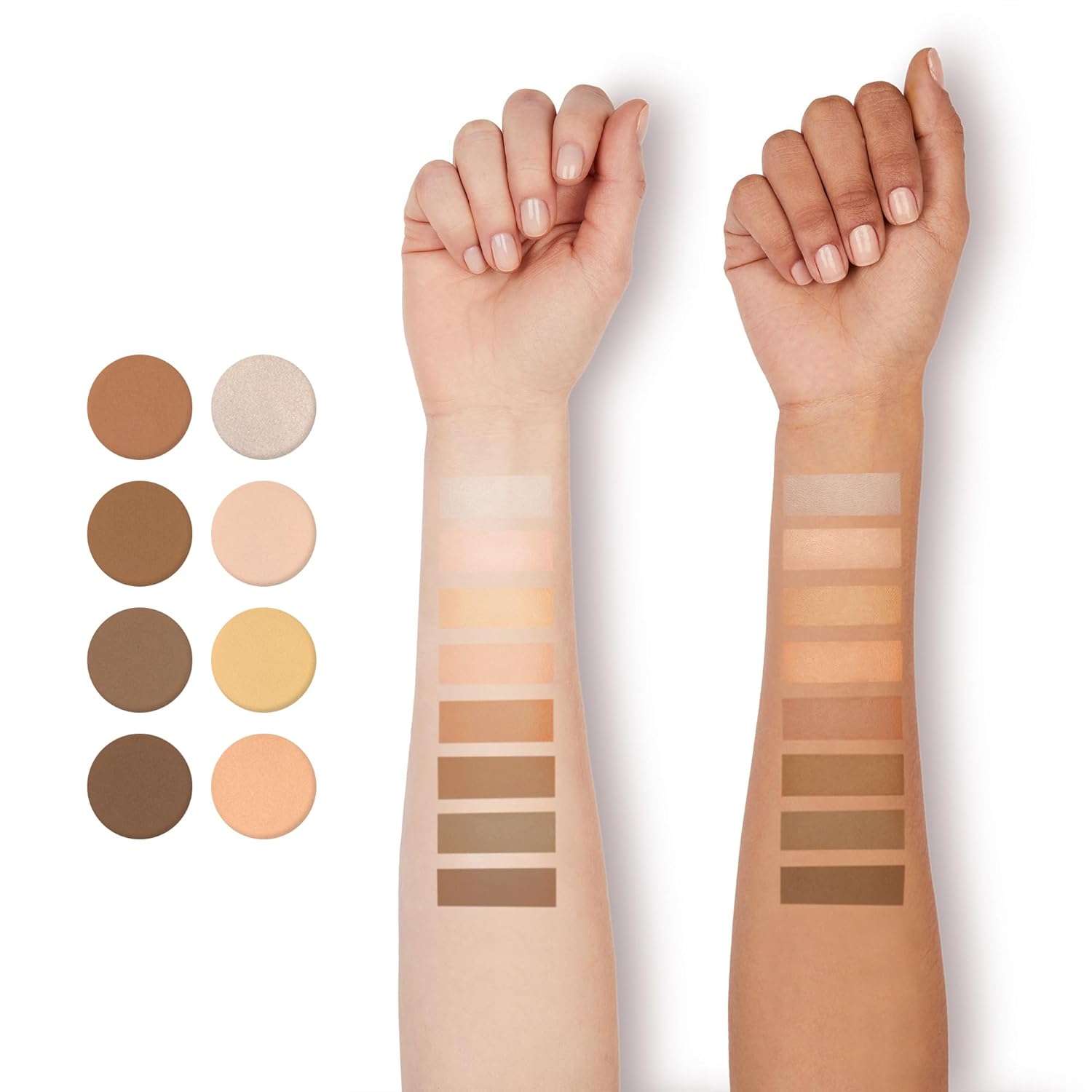 Makeup Palettes has 8 pressed powder textured pans in a range of colors from light tones to dark that range in matte and shimmer finishes. These colors easily mix, blend and match together to create the perfect look for your skin tone. This kit is suitable for all skin types including dry, normal and oily skin.
