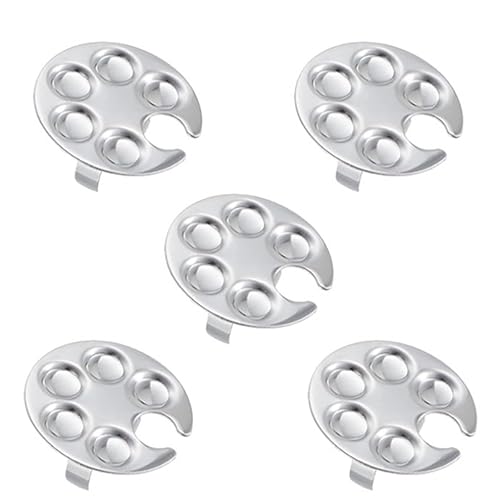 5 Pcs Silver Nail Art Palette - Mini Ring Mixing Board Set(Silver)