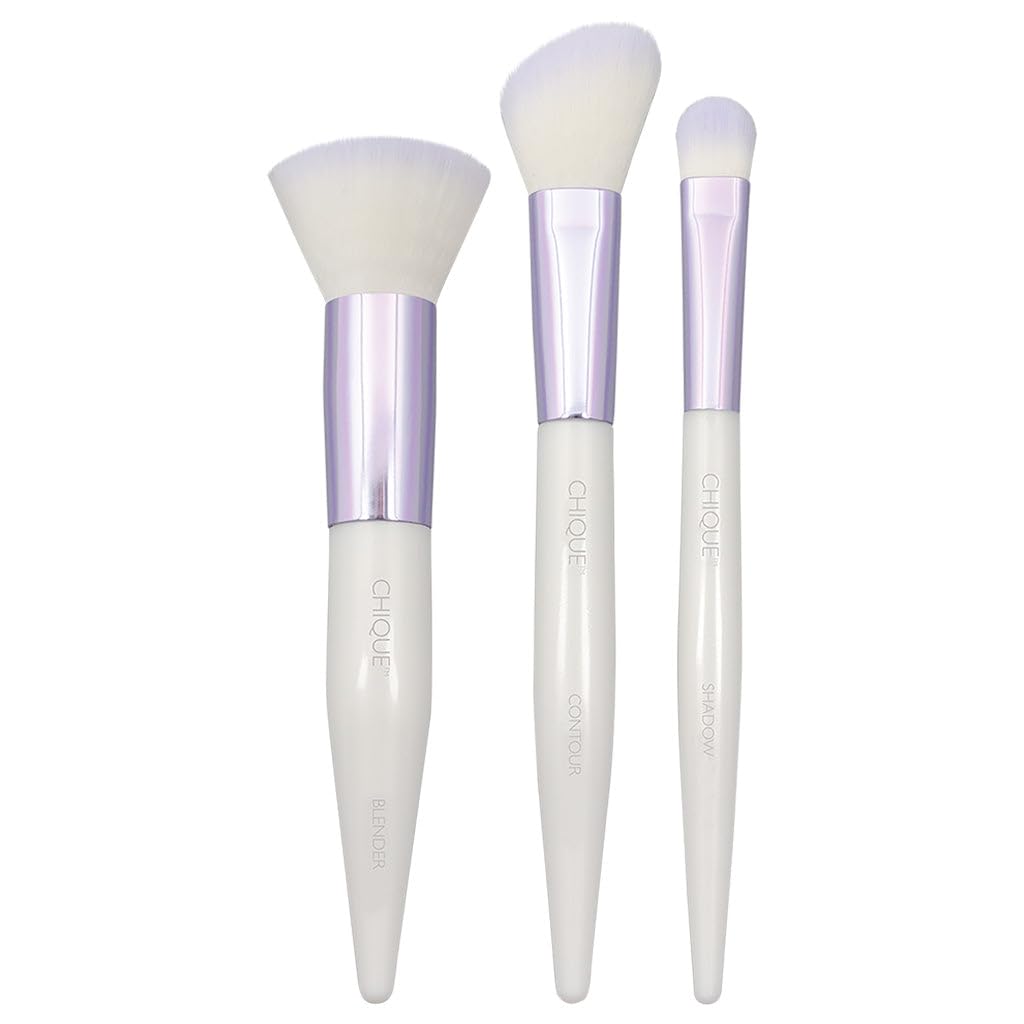 Chique™ Studio 3pc Complexion Makeup Brush Kit – Foundation, Blush & Contour Brushes for Flawless Coverage, Vegan & Cruelty-Free