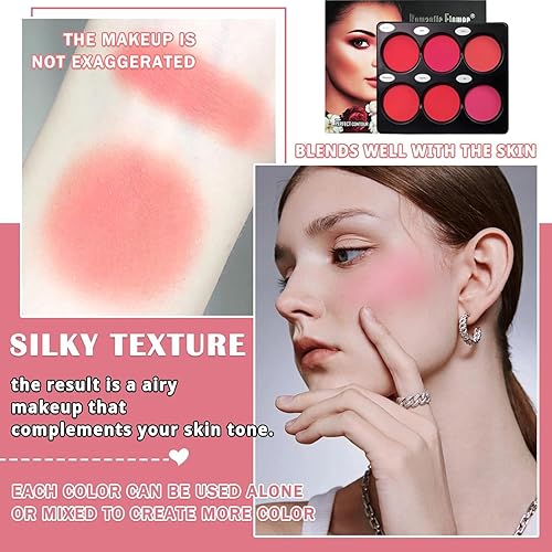 ✨【Six-Color Blush Palette】This six-color blush palette features rich, luxurious shades with unique hues that are stunningly beautiful and flattering for all skin tones.