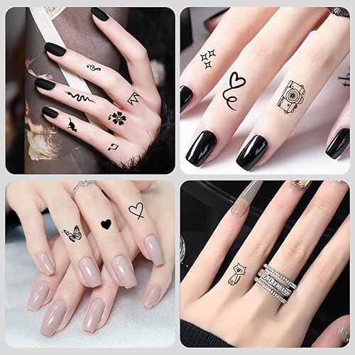 Ultra-Cool Mini Finger Tattoos: 60 stylish temporary tattoo stickers featuring mini designs (black hearts, stars, flowers, butterflies, cartoon skulls, music notes, animal patterns, etc.) for fingers, hands, ears, chest, and more