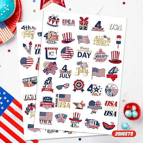 Safe and Long Lasting- The tattoo supplies are made of high quality paper,it is allergenic,non-toxic and safe for your skin. These patriotic tattoos are waterproof,you do not need to worry that it will easily fade or fall off. The July 4th decorations is also dry and sun-proof, can maintain bright colors for a long time and tear off without residue