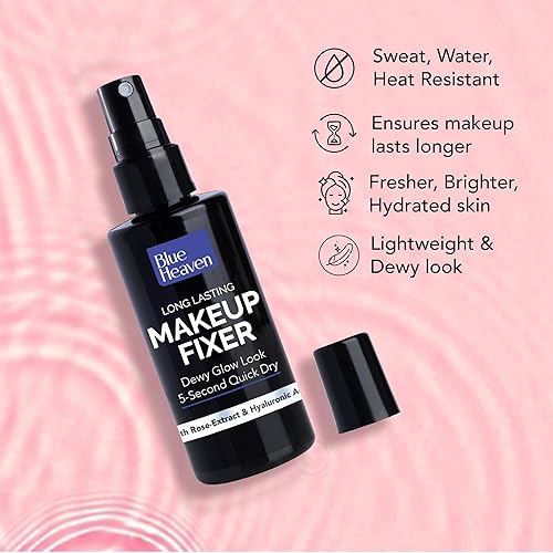 Blue Heaven makeup spray is a light weight, Non greasy texture that sets your makeup without melting or fading and leaving it intact for whole day.