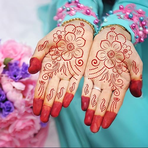 6 Sheets temporary tattoos stickers. high-quality Sheet Size: 10.6x8.2 in Henna Tattoo Stickers, Long lasting and waterproof. They will not wash off and will last for 5-7days.