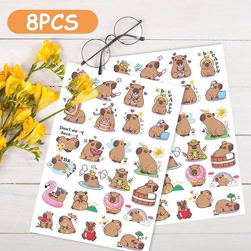 What You Will Receive: You will receive 8 sheets of capybara birthday decorations temporary tattoos each 23×16 cm(9×6 inches) with over 200+ fun designs of capybaras, balloons, cakes, and gifts—great capybara party decorations for birthday fun