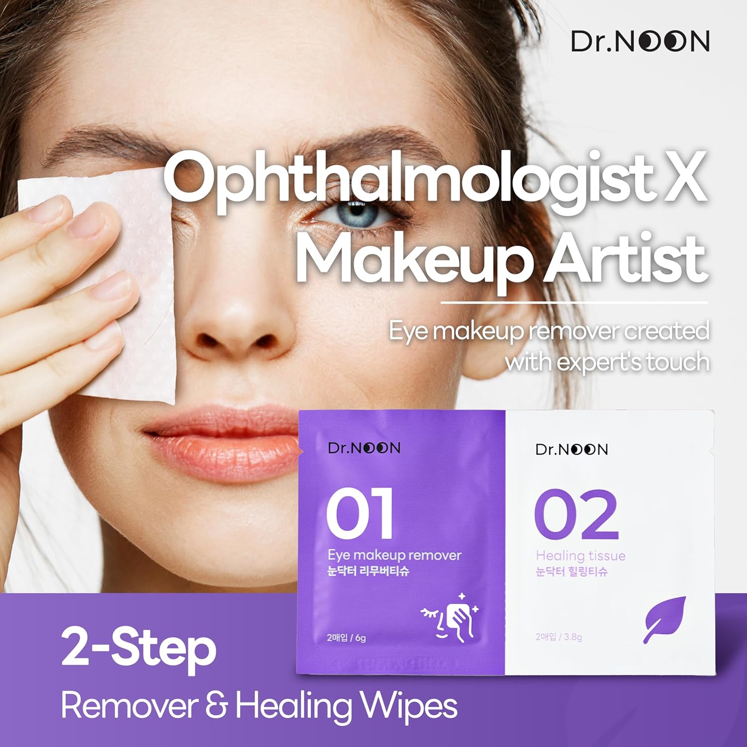 Expertise and Product Power: Introducing Dr. NOON Makeup Remover & Soothing Wipes, developed by two Korean leaders in ophthalmology and makeup. This innovative product effectively combines the power of an oil-based makeup remover with eye wellness in a single solution.