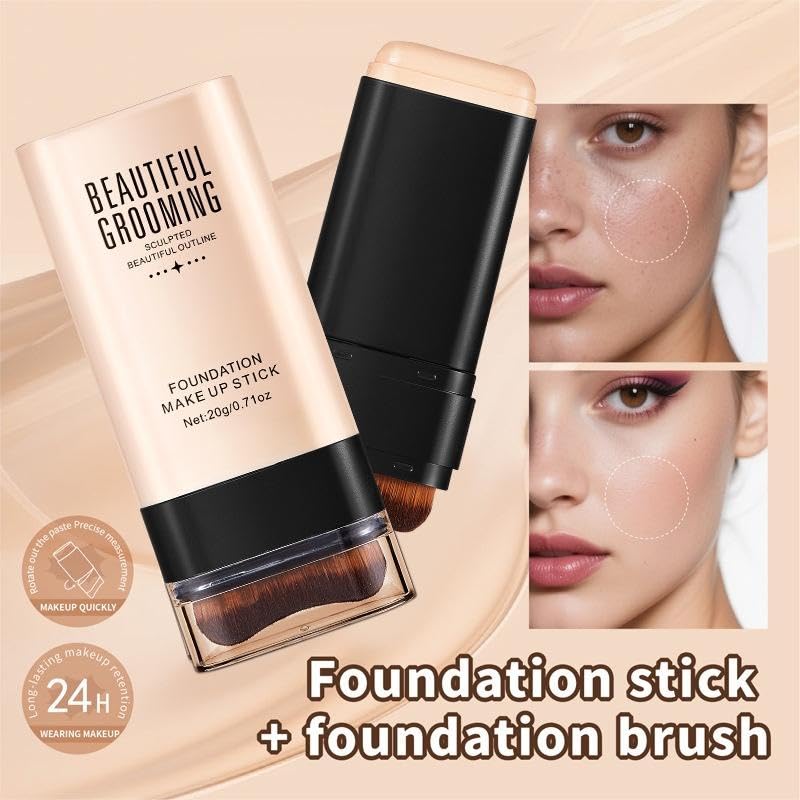 Dual-Ended Foundation Stick with Brush - Full Coverage & Natural Finish(03#Warmbeige)
