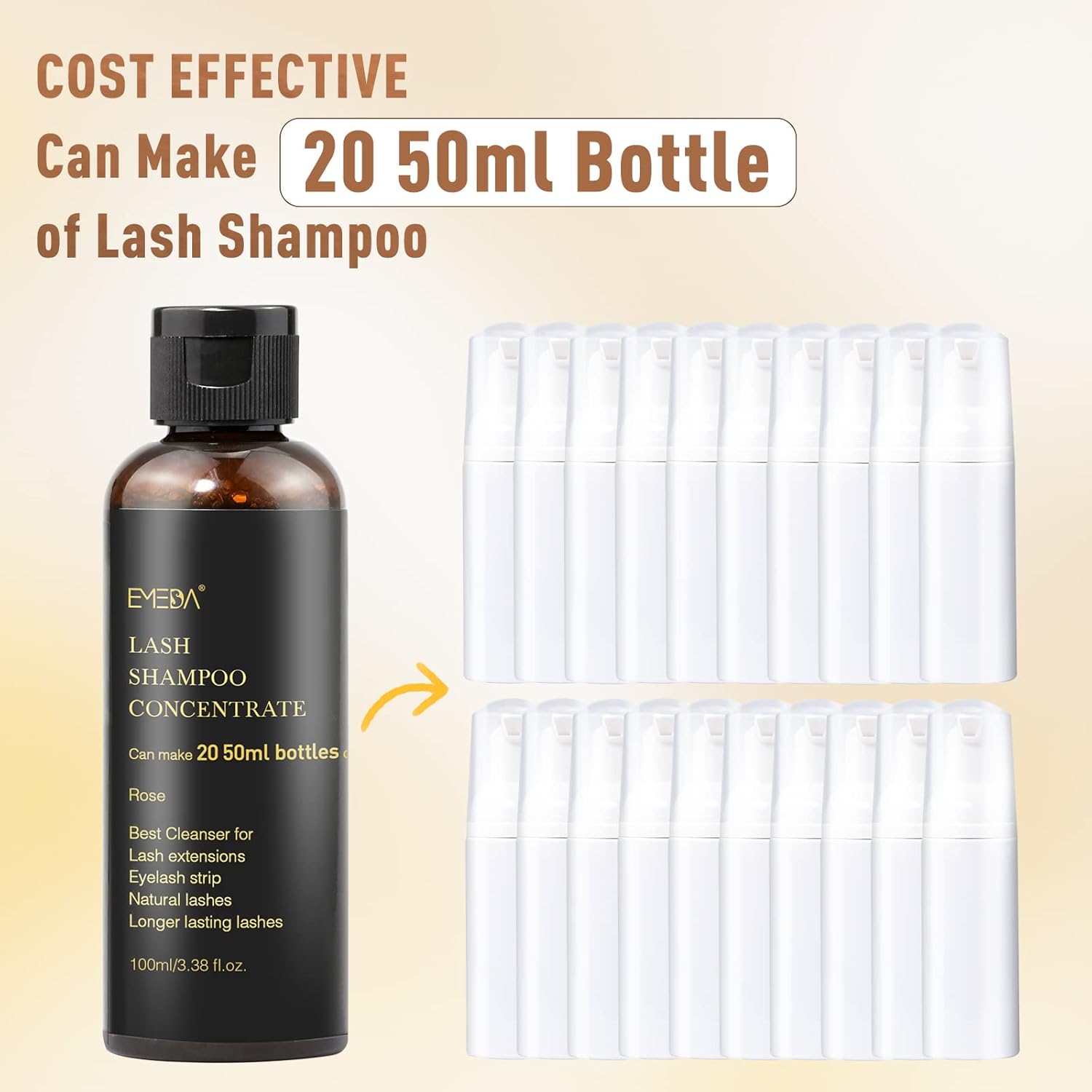 LASH CLEANSER CONCENTRATE BULK KIT: The eyelash cleanser for extensions can make Twenty 50ml bottles of eyelash cleaner, 2pcs 50ml foam lash shampoo bottle - 1pcs lash shampoo brush - a small cup with scale