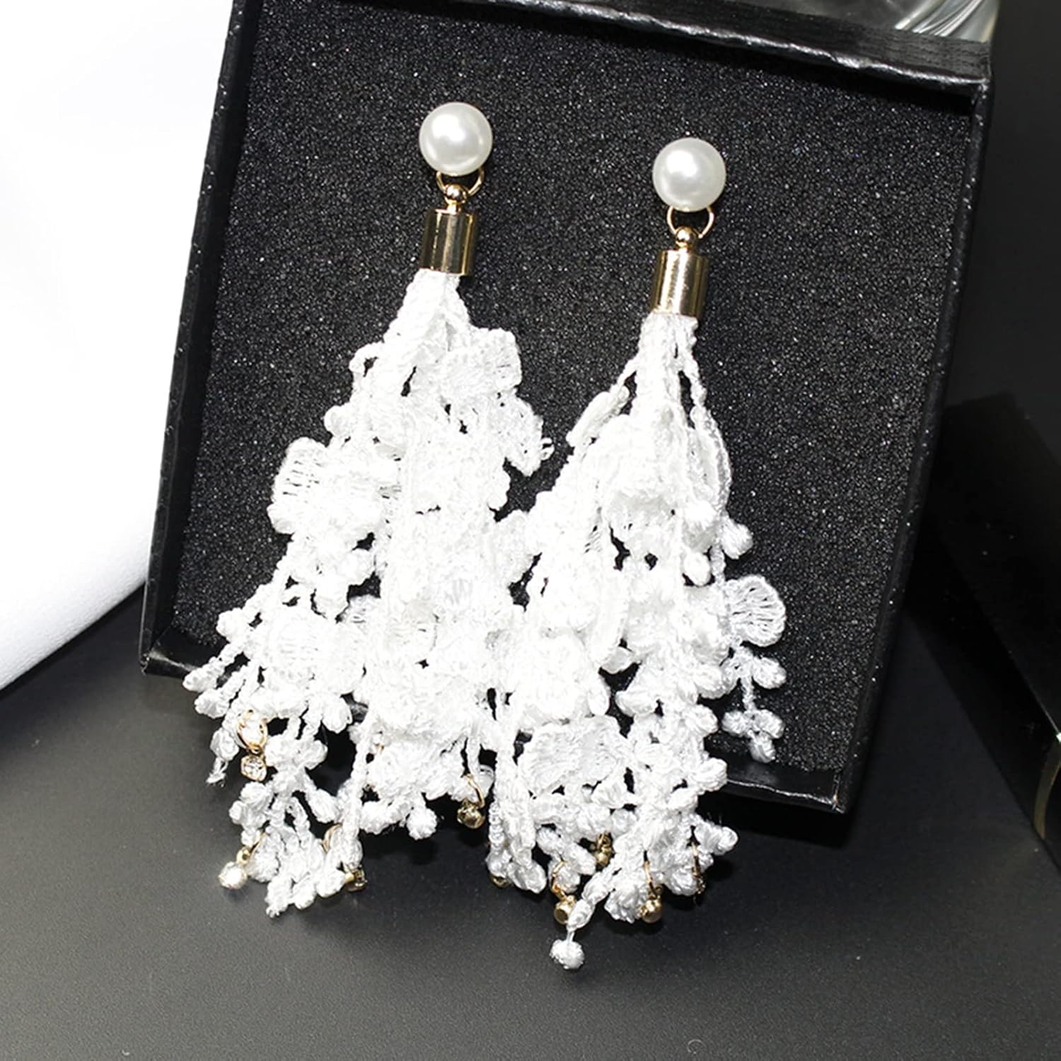 ★ This lace earrings uses tassel streamers, multi-layer flower and faux pearl ornament, which can make you look full of temperament and sweet.