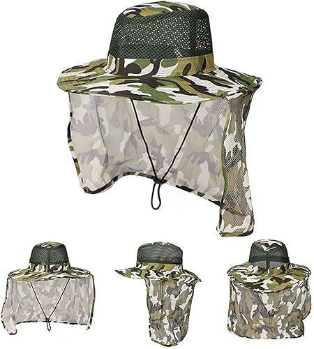 Fishing Sun Hat with Removable Face Flap & Mesh Protection(Camouflage 3,One Size)
