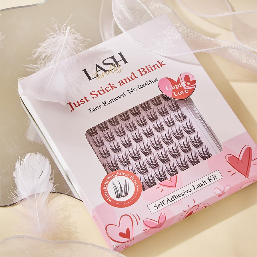Instant No-Glue Application – Pre- glued lash clusters Achieve salon-quality lashes in seconds with self-adhesive clusters that press directly beneath natural lashes. you don’t need lash glue even lash applicator, you just need a box of self adhesive eyelashes, just take off clusters and put on your natural lashes! Includes Magic Tweezer for precision placement (90 clusters in 10-14mm lengths).