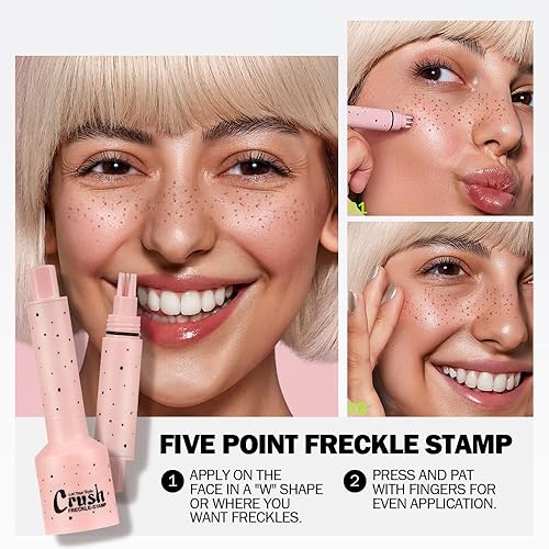 Quick activation&5-second application: No brushes, stencils or specialized skills required. This ergonomic, pocket-friendly pen simply twists to unlock, press top 3-5 times to saturate. Innovative 5-point silicone stamp tip perfectly simulates natural freckles,Save time during your morning routine or on-the-go glam sessions