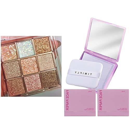 Glitter Eyeshadow Palette & Oil Blotting Paper w/Mirror