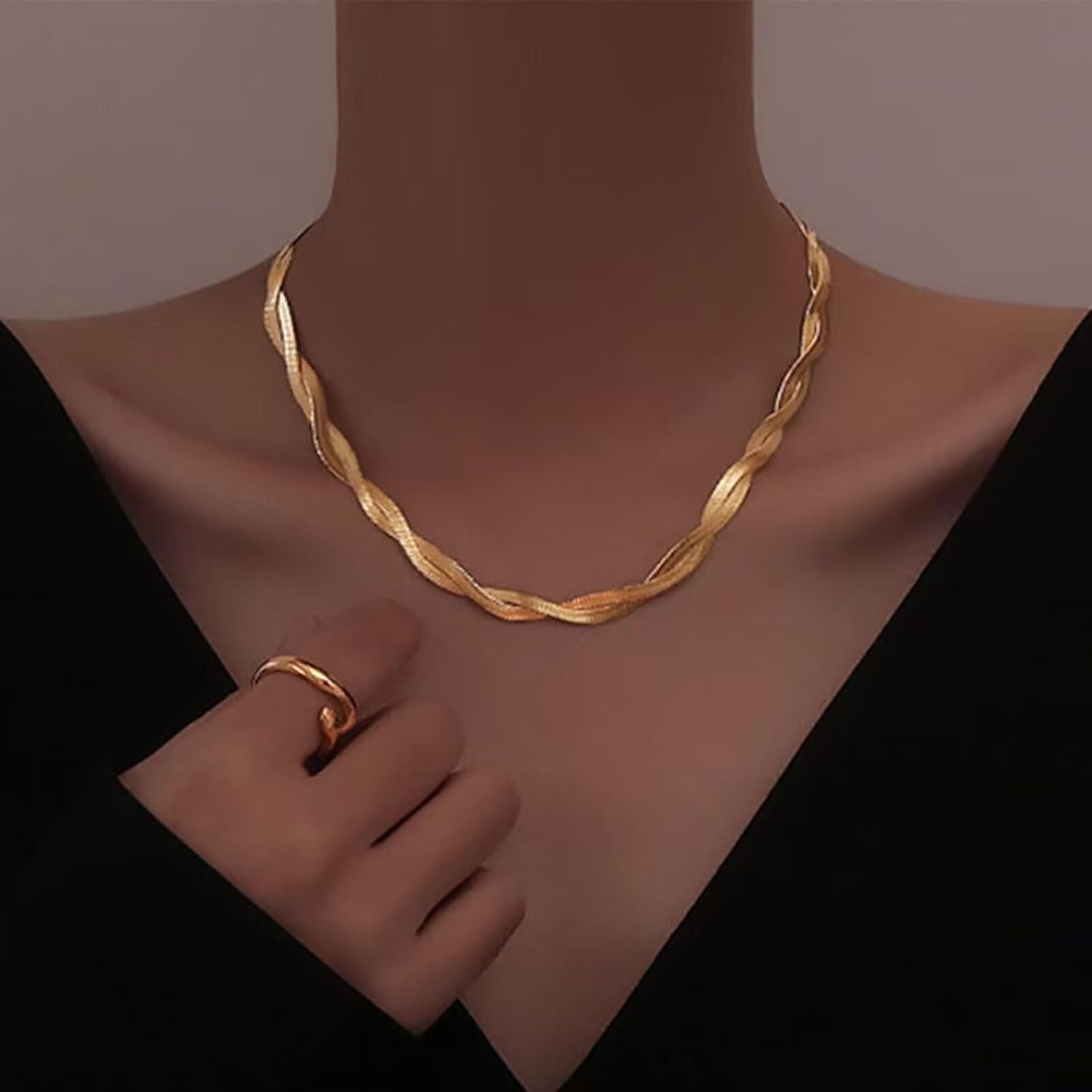 Double flat snake chain necklace.Gift Occasion:The Simple Elegance and Intricate Detailing, Combine Effortlessly Together to Suit any Style, From Casual to High Chic.Suitable for any Occasion, Such as Beaches, Event Parties, Dance Parties, Dates, Daily Collocations,Banquet,Weddings, etc.