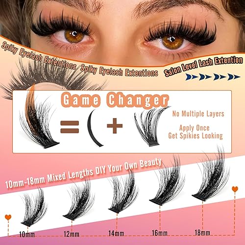 【Lash clusters with Spikes】120D spiky lashes designed with wipsy spikes,not too dramatic,suitable for everyday makeup.Suitable volume lash clusters highlight your eyes.Easy for beginners to get a salong lash extension effect.Gifts for women mom birthday and holiday.