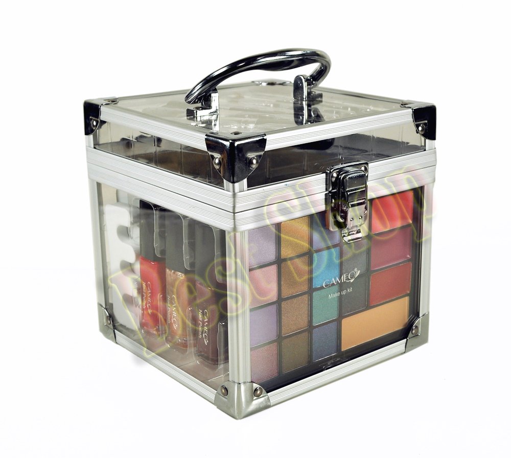 3 lipsticks, 5pcs brush set and 2 applicators, 15 eye shadows, 1 press powder, 3 nail polish
