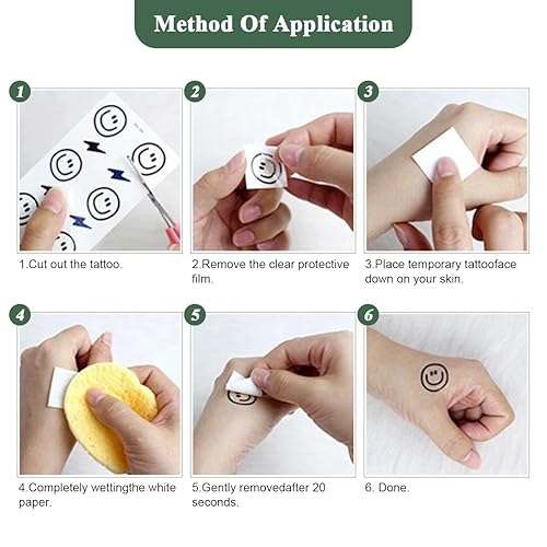 The tattoo sticker is easy to apply and remove. Just clean the skin, stick it on, and wet it with water for 30 seconds and easily removed by rubbing alcohol, body oil, olive oil.