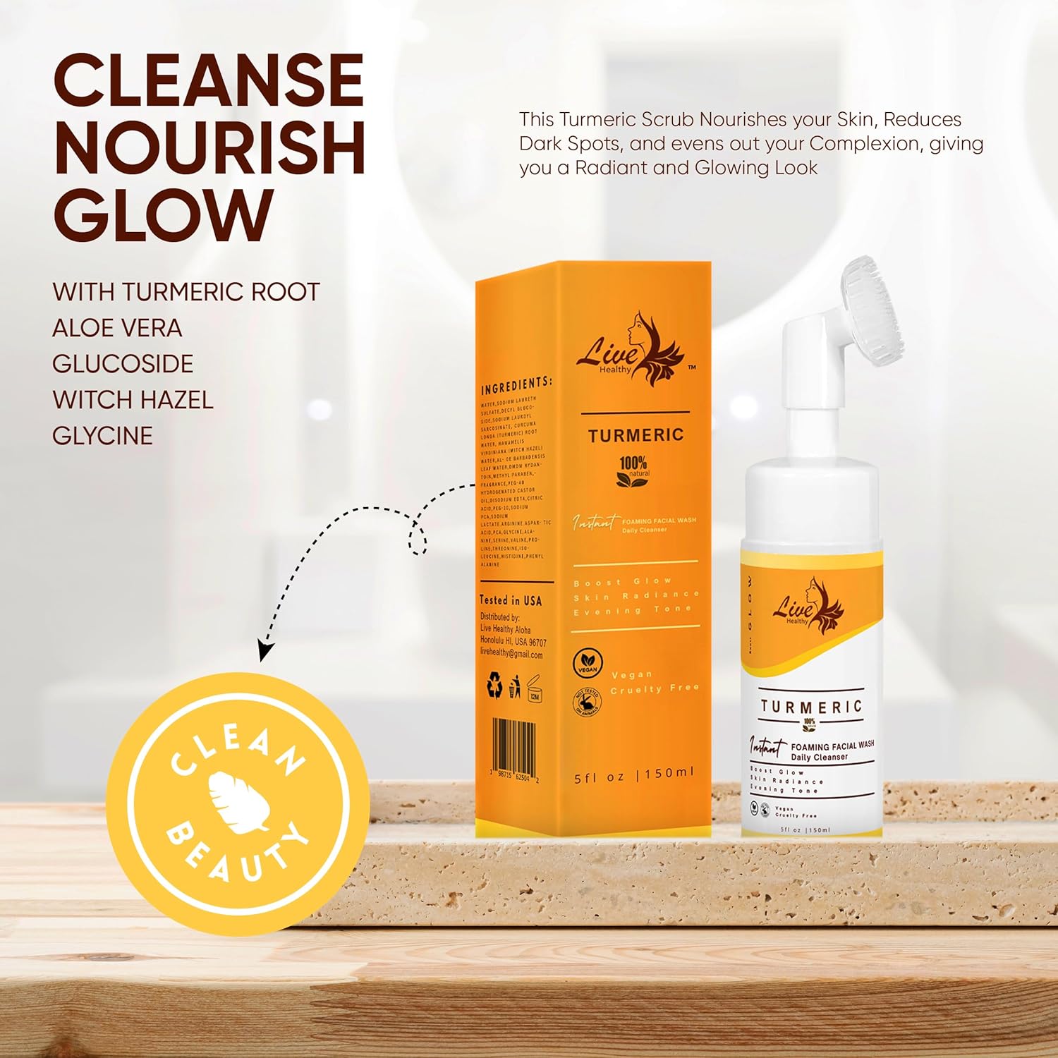 ✅ EASY TO USE - Wet your face, then dispense the turmeric facial cleanser onto your fingertips. Gently massage your skin in circular motions with the brush, rinse with warm water for a clean finish.