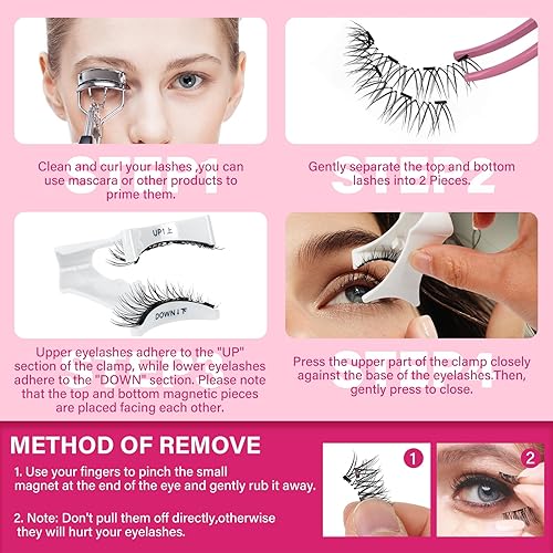 Easy To Wear: This magnetic false eyelash divides an eyelash into several parts, each part has some magnetic strip clips on both sides, you just need to fix the false eyelash on the eyelash curler, and then angle the magnetic eyelash curler on your own eyelashes. Effectively save your make-up time.