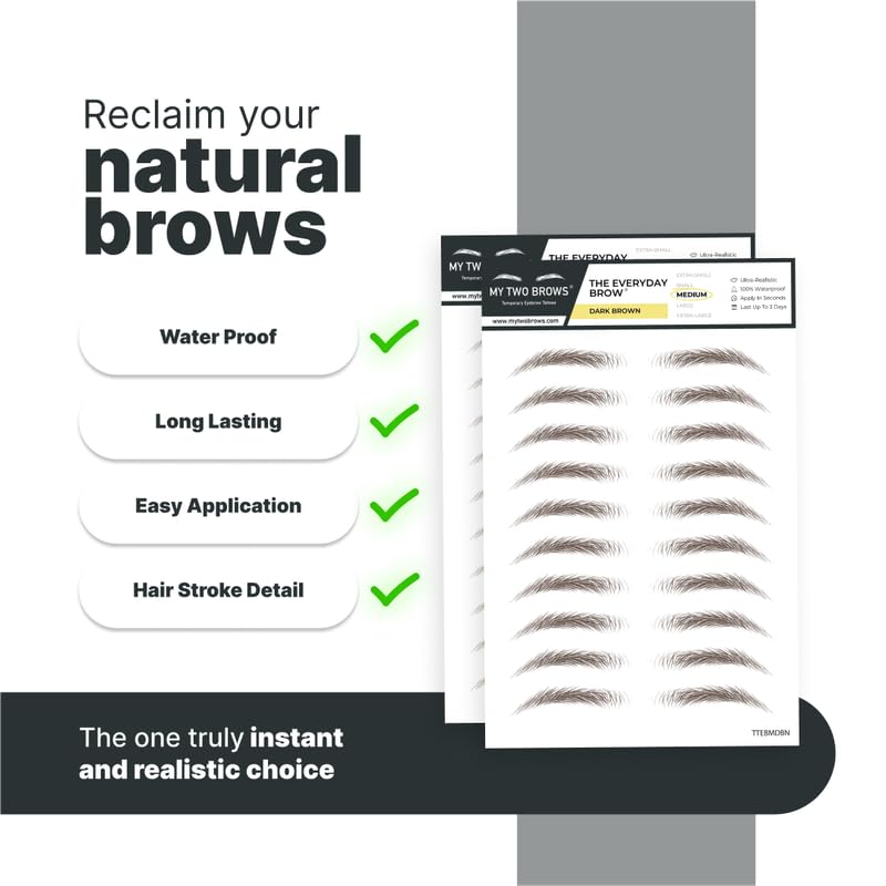 Medium Brown Eyebrow Tattoos - Waterproof & Realistic(Dark Brown,1 Count (Pack of 1))