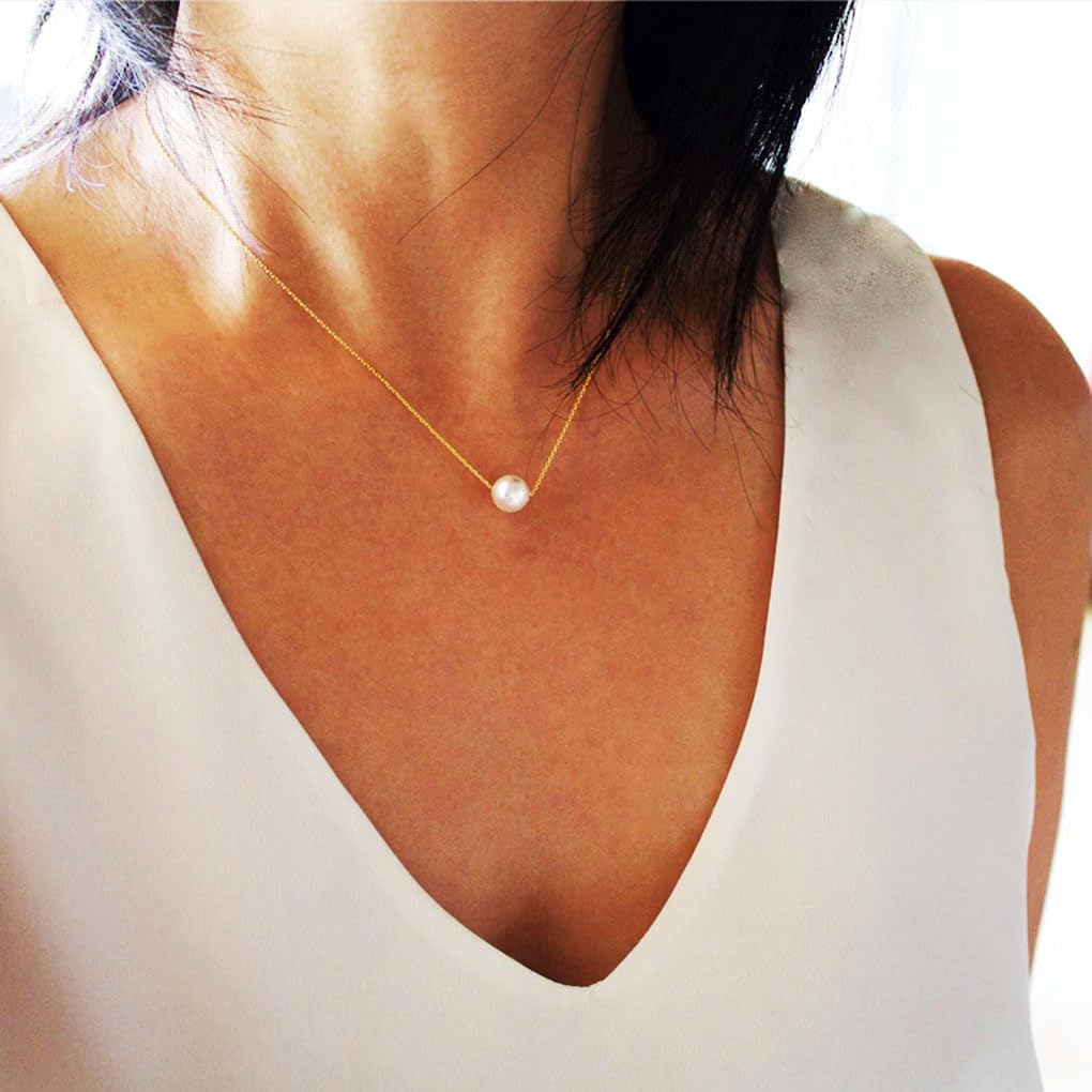 Dainty pearl necklace is made of high luster pearl and high quality alloy.Not easy to fade and break.