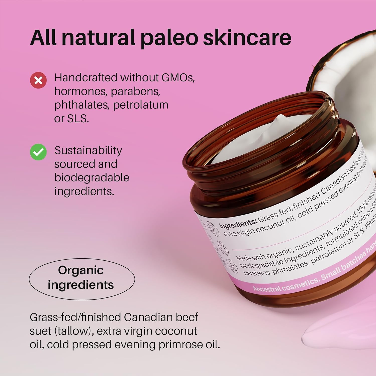 Made with certified organic, grass fed/finished Canadian beef tallow, extra virgin coconut oil and evening primrose oil.