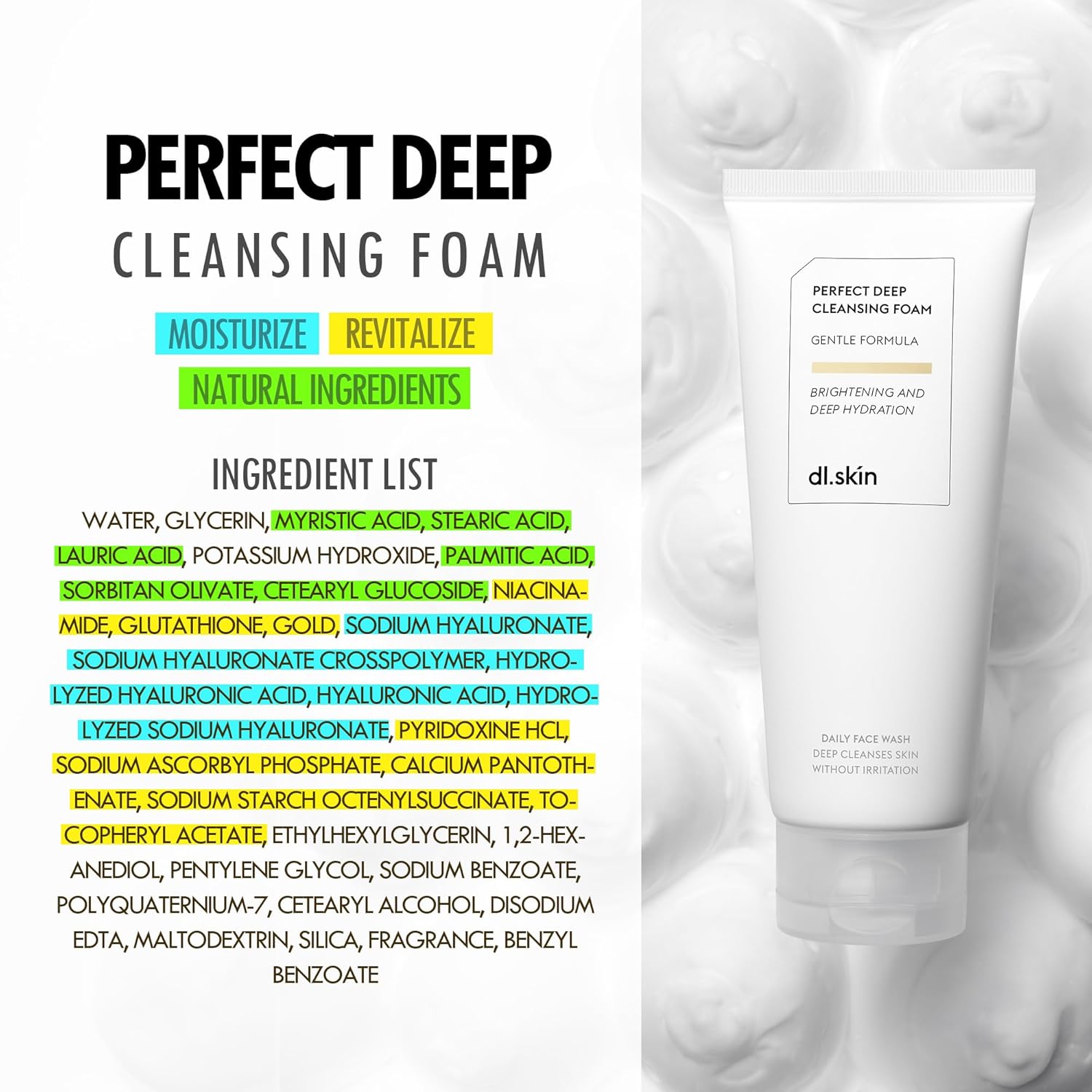 DEEP FACIAL CLEANSING WASHES. Infused with the potent benefits of Glutathione, DL SKIN’s Perfect Deep Foaming Face Wash invites you to experience a skincare transformation like never before. This Korean face cleanser features a rich formula with a dense viscosity that goes beyond the ordinary, offering pampering without irritation.