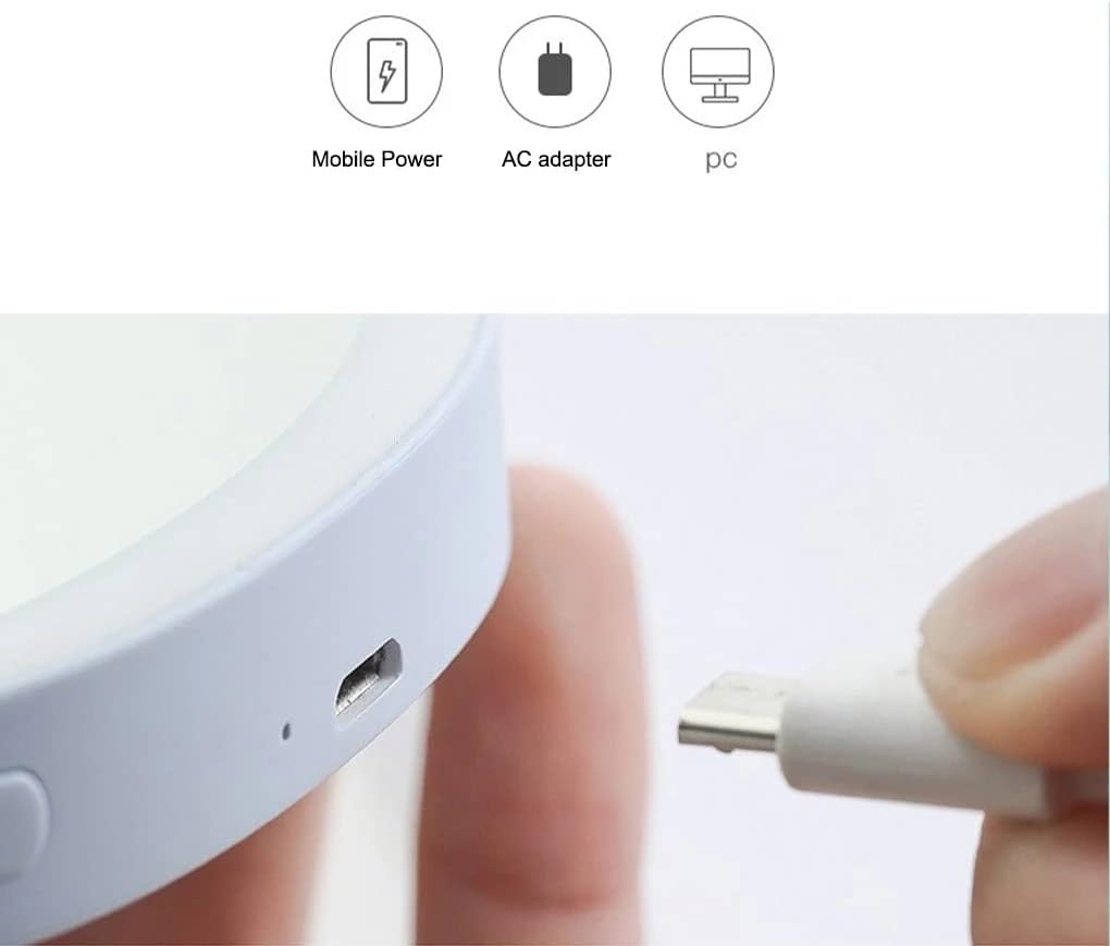 Rechargeable. This LED makeup is USB rechargeable and can be charged conveniently via a power bank or USB power adapter.