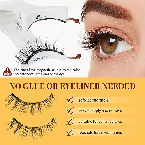 No Glue or Eyeliner Required: Our upgraded magnetic eyelashes technology provides a comfortable wearing experience for people with sensitive eyes. Say goodbye to the mess of glue for beginners with our magnetic eyelashes kit. The magnetic design ensures a secure fit without the need for lash glue, so you don't have to worry about your eyelashes falling off! The eyelashes magnetic lashes can be easily matched with any cosmetics without eyeliner, specially designed for lazy people!