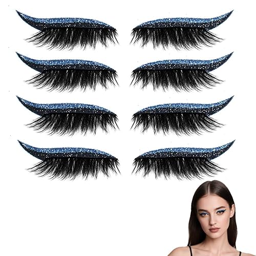 Reusable Self-Adhesive Eyelashes with Eyeshadow - 4 Pairs(Blue)