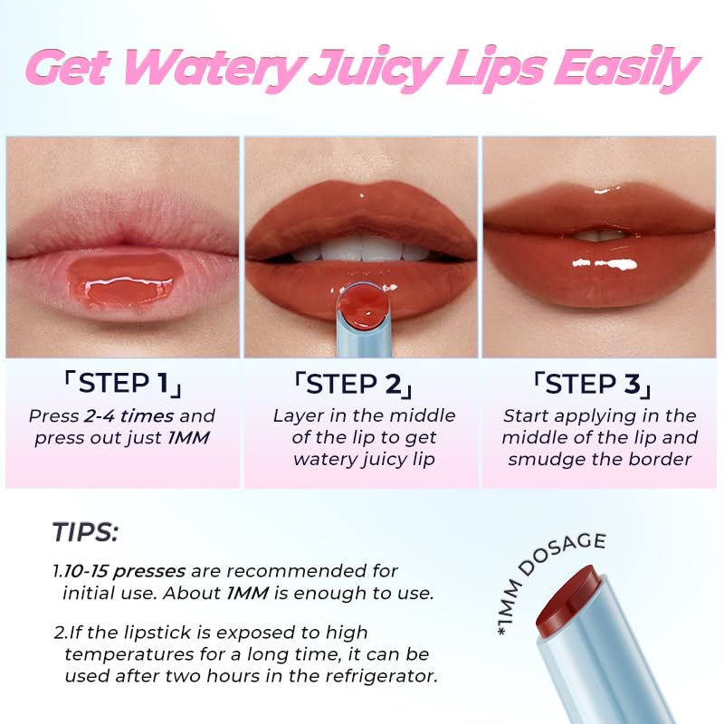 JUICY LIPS: This solid lip tint provides a sheer wash of color, achieve a dewy, glossy lip look with this water tint lipstick that delivers a lustrous sheen.