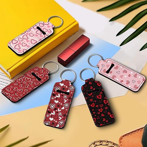 5 Pcs Lipstick Holder Keychain Set: Package contains 2 lipstick holders with different patterns