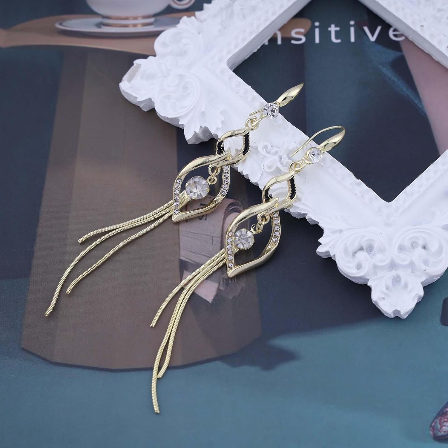 Crystal chain drop earrings.Item Details:Handmade Item.Size:As Shown.Color:Gold.Materials:Quality Alloy/Crystal.Location:Ear.Style:Boho/Vintage.