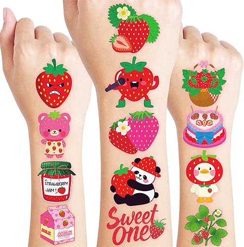 60 PCS Strawberry Temporary Tattoos for Kids Party Favors
