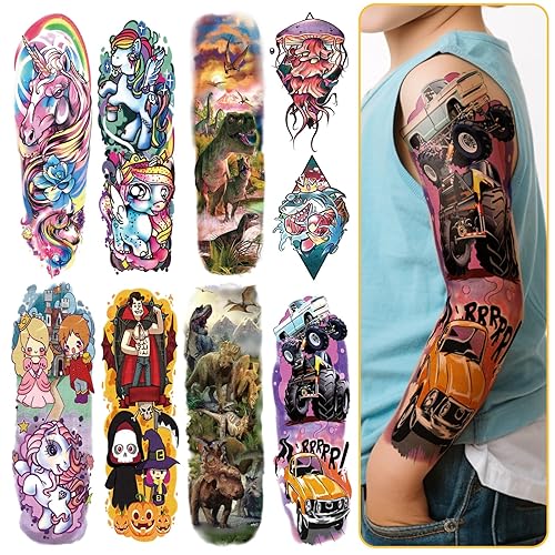 3D Kids Temporary Tattoos - Dinosaur, Unicorn & Dragon Sleeves