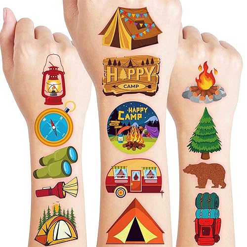 60 PCS Kids Camping Tattoos - Birthday Party Favors