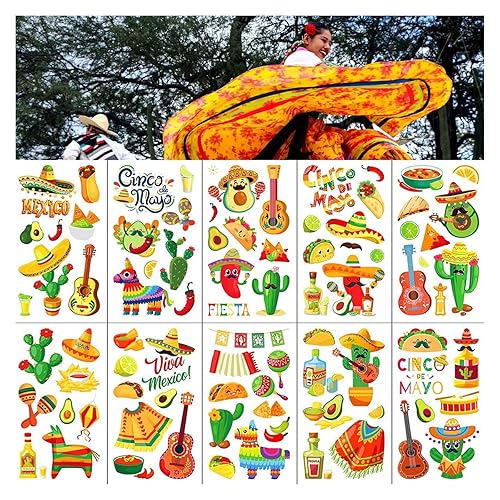 Cinco De Mayo Tattoos Kit - 10 Mexican Fiesta Tattoo Sheets