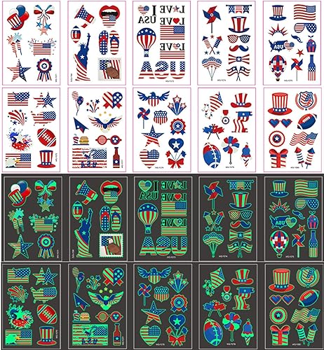4th of July Glow Tattoos - 80Pcs USA Flag Stickers
