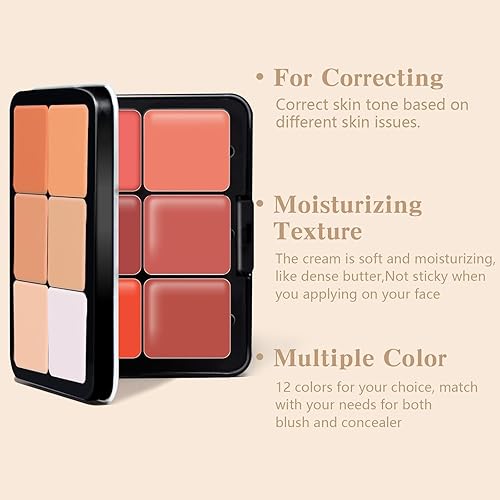 12-Color Cream Blush & Contour Palette - Matte Finish